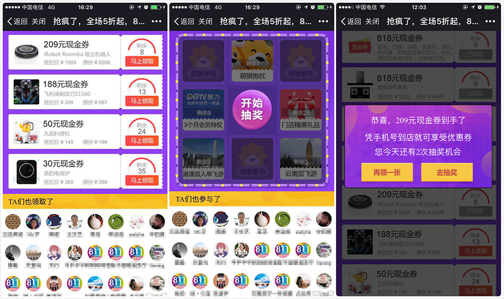 給力大促抵扣券+抽獎(jiǎng)互動(dòng)+助*力分享,引燃社交圈裂變傳播