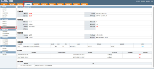 進入預售訂單頁面后,六大模塊一目了然。透過這個頁面我們可以清晰地看到訂單信息、付款信息、配送信息、商品信息、付款單、操作日志等。