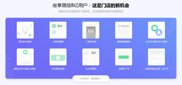 入口多樣,包括但不限于:附近的小程序、小程序置頂、二維碼引流、微信搜索、公眾號關(guān)聯(lián)、微信會員卡直達(dá)、好友推薦、公眾號置頂、小程序廣告、小程序瀏覽記錄打開等等,還在陸續(xù)開放中。