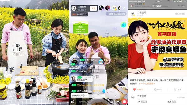 3月25日與26日,二更制作團隊來到安徽黃山油菜花田,為全國觀眾現場直播美食。