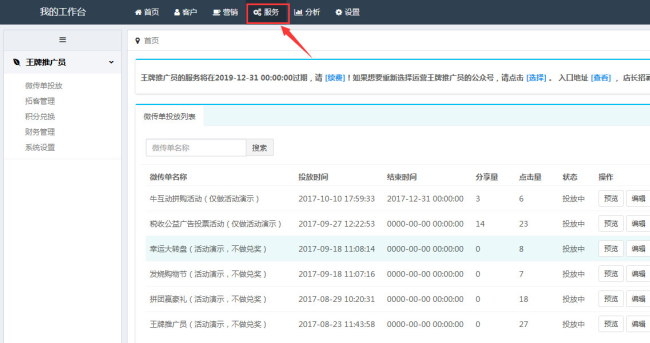 點(diǎn)擊【服務(wù)】進(jìn)入【王牌推廣員】頁(yè)面