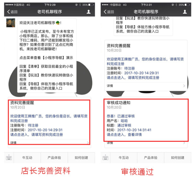 關(guān)注公眾號(hào)后跳出資料完善提醒,填寫(xiě)相關(guān)信息后,經(jīng)過(guò)后臺(tái)審核通過(guò),就能成功成為店長(zhǎng)!