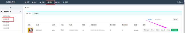 注:在賬戶后臺(tái)即可對(duì)店長(zhǎng)完成審核。點(diǎn)擊【服務(wù)】—【拓客管理】—點(diǎn)擊“審核”