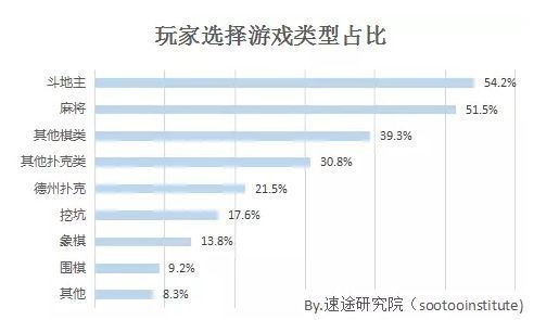 從玩家選擇游戲占比中看出,斗地主以54.2%的比率獲得最受歡迎的棋牌游戲類(lèi)型。