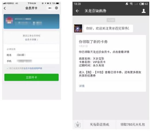 開卡有禮是針對會員的促銷活動,通過禮品吸引粉絲激活會員卡,輕松獲得新會員,收集潛在消費者信息。