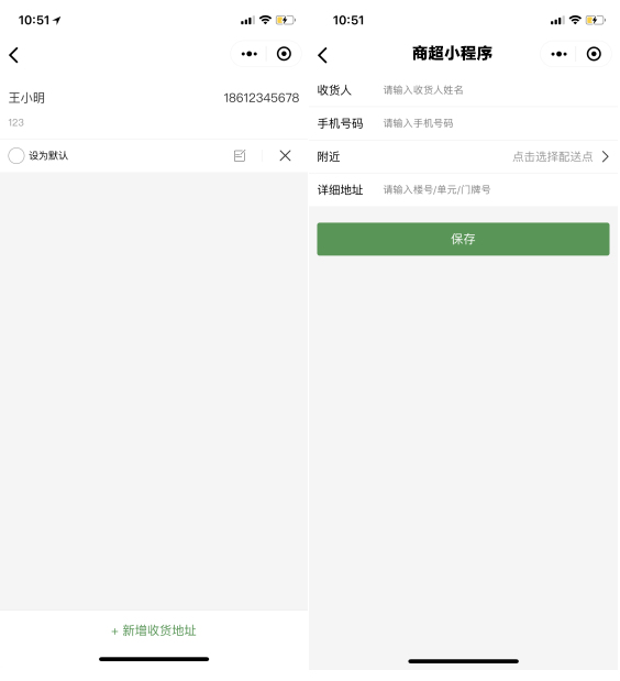 會員僅需輸入手機(jī)號、收貨人、門牌號、配送點(diǎn)等信息即可快速添加收貨地址,今后在平臺上下單就可以直接使用之前添加過的收貨地址啦~