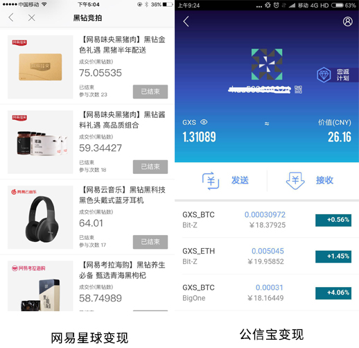 公信寶也緊隨其后已經(jīng)開啟了提現(xiàn)功能。GXS可以直接兌現(xiàn)成人民幣,相比于網(wǎng)易的競拍玩法,變現(xiàn)能力更加簡單粗暴!