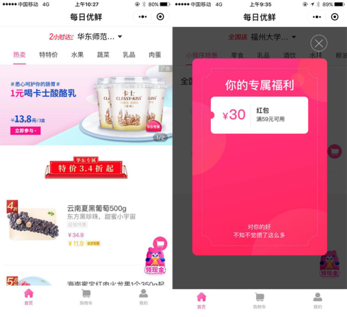 今天,方維君將為大家介紹一個爆款小程序——每日優(yōu)鮮小程序,教大家如何用「方維商超小程序」攪局”生鮮O2O江湖!