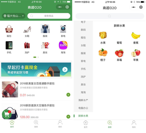 方維商超小程序同樣巧妙地設(shè)置了主、前倉,讓商家離消費(fèi)者更近。不僅實現(xiàn)了購買過程的“即開即用”,更實現(xiàn)的線上生鮮食品的“即買即得”。
