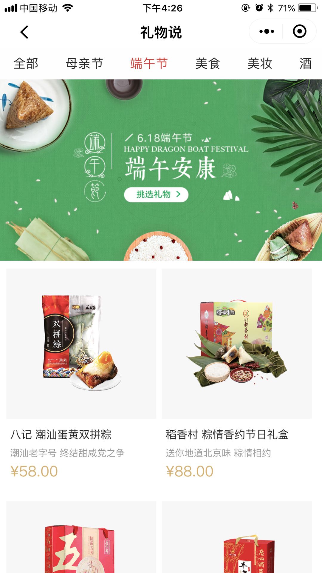 禮物說在商品分類上可謂是下了苦工:一方面根據(jù)不同節(jié)日或熱點,設(shè)置了例如“母親節(jié)”、“端午節(jié)”等模塊,幫助用戶篩選出意向禮物。另一方面根據(jù)商品的不同類別設(shè)置了“美食”、“美妝”、“數(shù)碼家電”等多種模塊,讓用戶在挑選禮物時能夠迅速定位到意向模塊內(nèi),挑選想要的禮物。