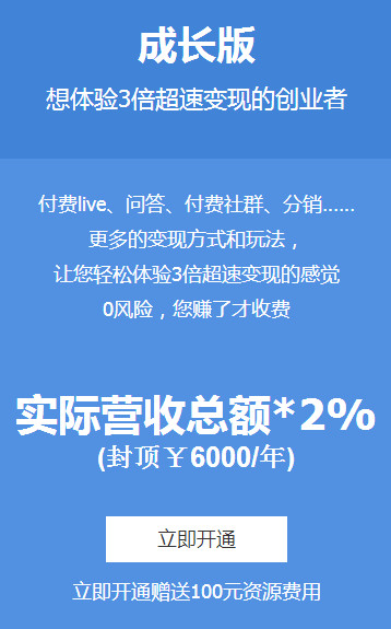 初級版本適合初創(chuàng)者使用,功能簡潔明了,足以滿足用戶進行內容變現(xiàn)。0成本入場內容變現(xiàn),助力講師獲取更高收入。