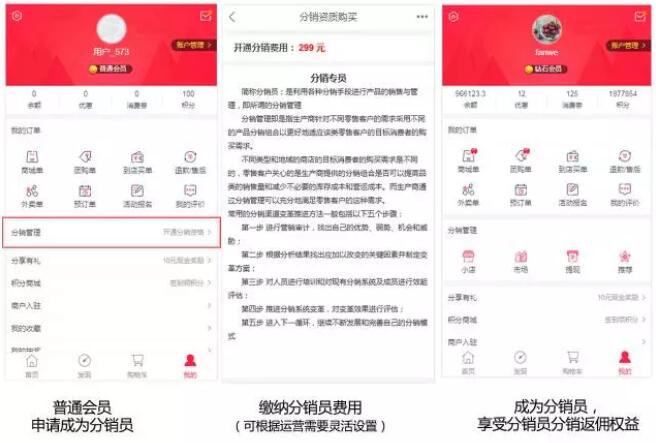 通過方維商城系統(tǒng)“分銷返利”功能,發(fā)動旗下分銷員幫助推廣活動,一級分銷員通過微信、朋友圈等線上渠道或線下地推的方式,發(fā)展新的第二級分銷員。產(chǎn)生交易后,該分銷員就會獲得一筆傭金。