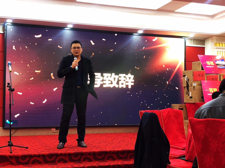 咱們的楊總在熱烈的掌聲中登臺演講: