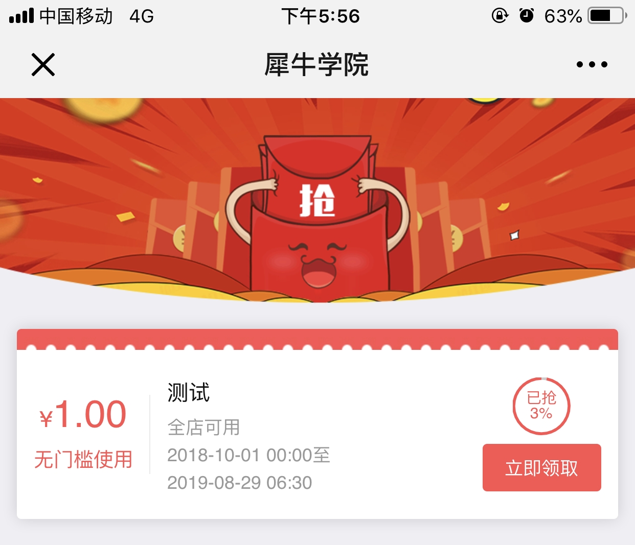 將優(yōu)惠券分享給用戶后,用戶領(lǐng)取優(yōu)惠券即可抵扣商品費(fèi)用。