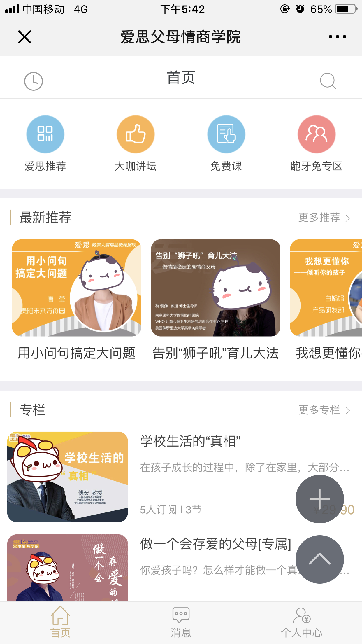 作為親子教育領(lǐng)域的價(jià)值連接者,愛思希望為專家和用戶建立更為直接可靠的信任關(guān)系。一方面為專家提供知識(shí)變現(xiàn)和個(gè)人品牌建設(shè)的渠道,另一方面為用戶提供專業(yè)權(quán)威的課程服務(wù),打造專業(yè)的親子知識(shí)服務(wù)店鋪。