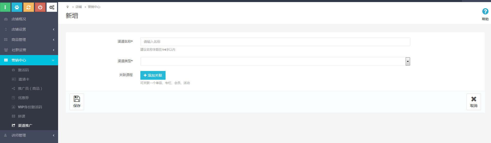 專業(yè)版店鋪在開通企業(yè)模式并綁定公眾號以后,可以在【營銷中心--渠道推廣】中創(chuàng)建不同的渠道二維碼,用戶掃碼二維碼,先關(guān)注公眾號后點擊推送的課程進入店鋪,系統(tǒng)自動為用戶打上渠道標簽。