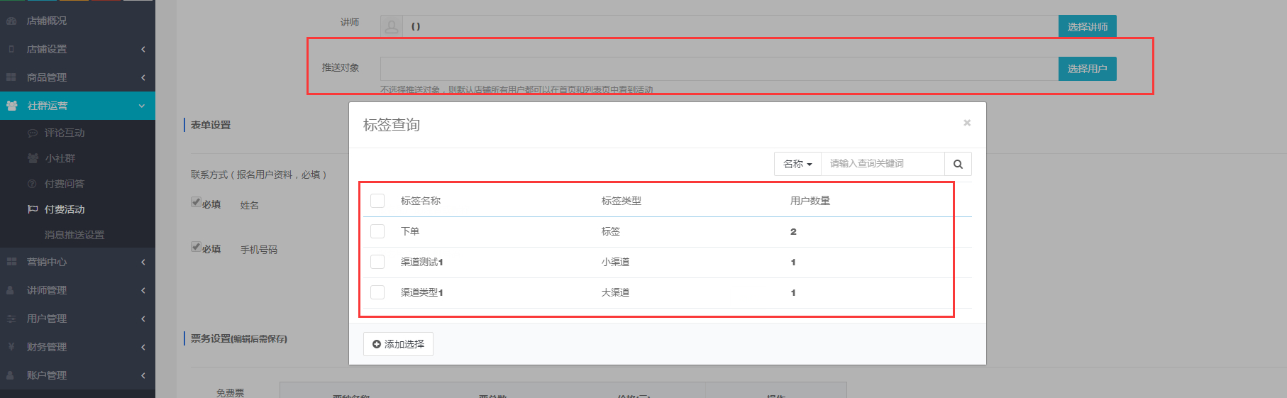 創(chuàng)建線下活動時,可以選擇將該活動推送給特定標簽的用戶,活動創(chuàng)建完成后,只有該標簽的用戶才能在前端的活動列表中看到該活動。