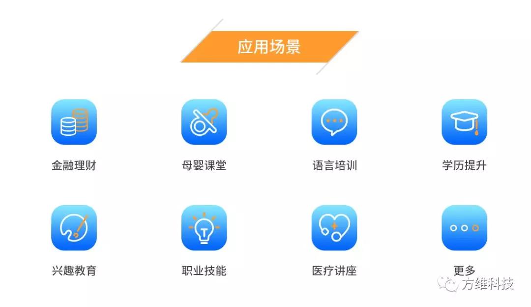 方維教育O2O系統(tǒng)支持市面上主流的課程形式,如視頻、音頻、圖文、直播、問答等等,能夠滿足各場景下的不同需求。