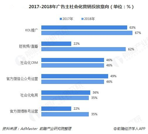 短視頻市場的火熱,讓廣告主對(duì)短視頻的營銷投放興趣大增。在廣告主社會(huì)化營銷投放意向調(diào)查中,2018年短視頻的社會(huì)化營銷投放意向大幅提升,備受廣告主青睞。