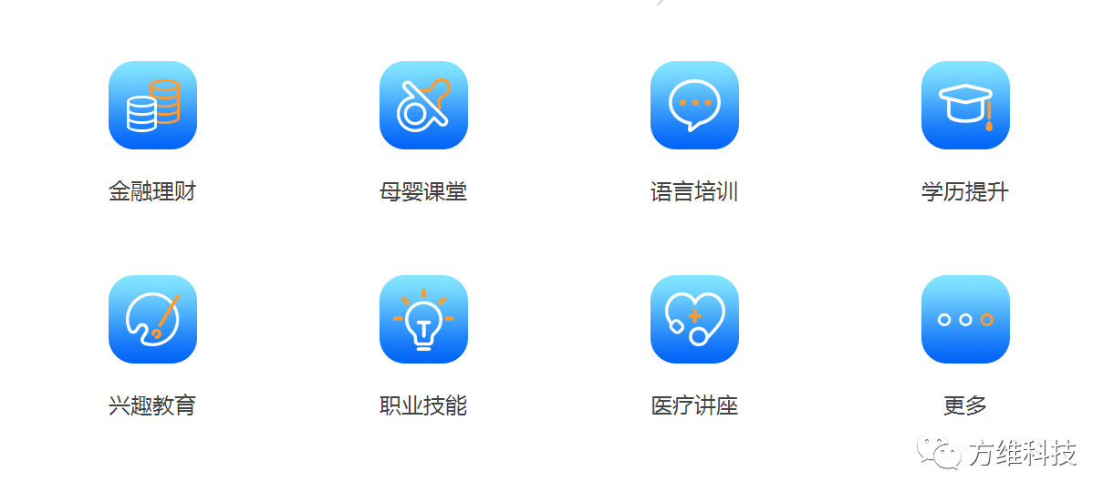 方維教育O2O系統(tǒng)支持市面上主流的課程形式,如視頻、音頻、圖文、直播、問答等等,能夠滿足各場(chǎng)景下的不同需求。