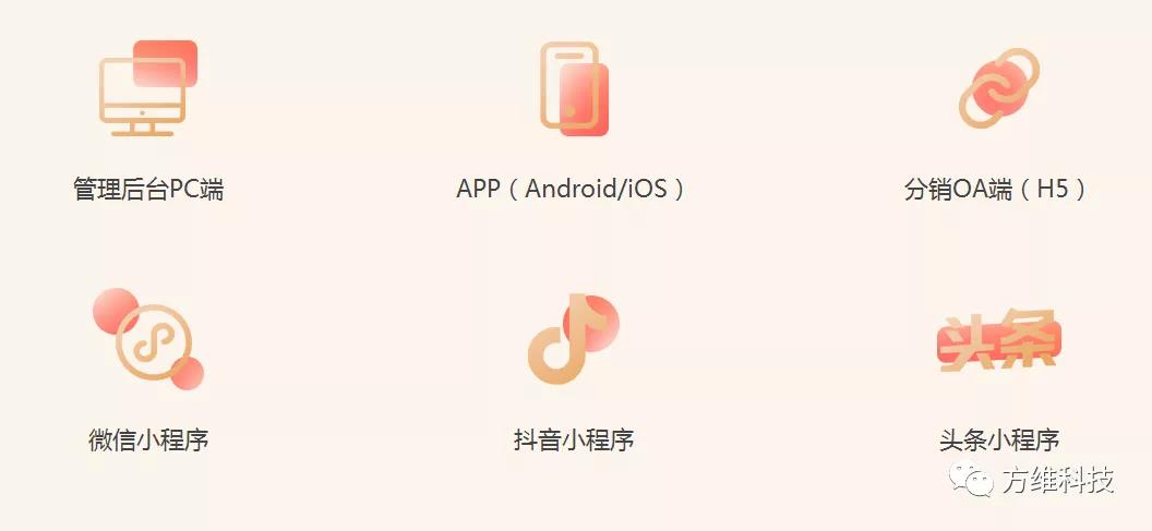 系統(tǒng)支持PC端、APP、H5、小程序(支持微信小程序、抖音小程序、頭條小程序等)多端口展示,全渠道覆蓋匯聚更多流量。