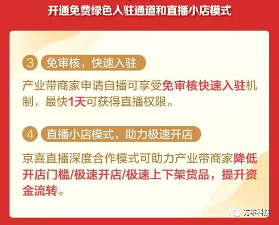 將直播與商城結(jié)合的不僅僅是淘寶,京喜直播作為京東旗下得力干將,也于2020年年初上線了“直播小店”模式,幫助商戶快速上播。