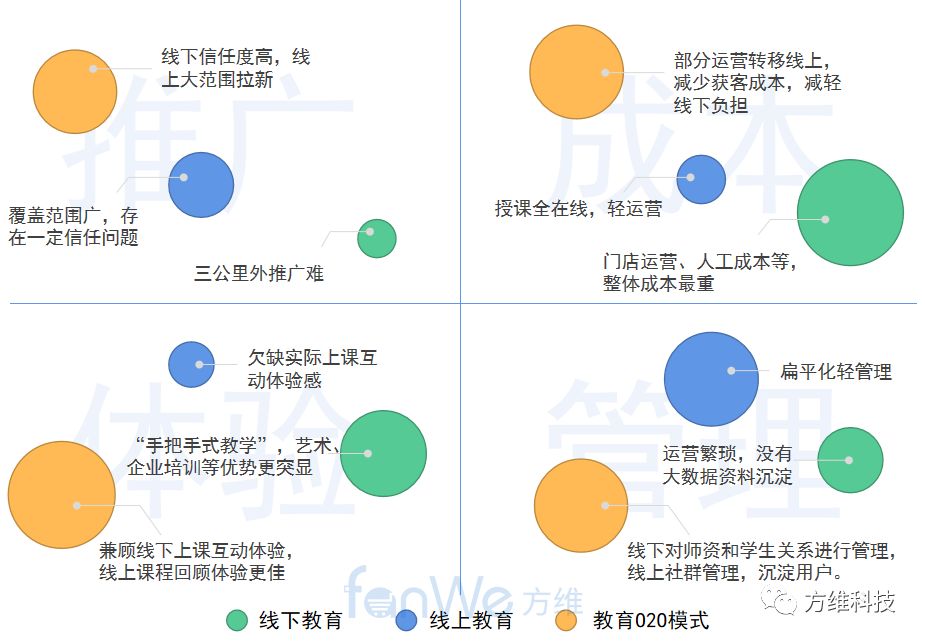 從此次表現(xiàn)不難看出,中小型傳統(tǒng)線下教育機(jī)構(gòu)抗風(fēng)險(xiǎn)能力較小,有線上布局的機(jī)構(gòu)嘗到了甜頭。目前市場上的教育培訓(xùn)模式,可歸類為線下教育、在線教育及線上線下整合的教育O2O模式。