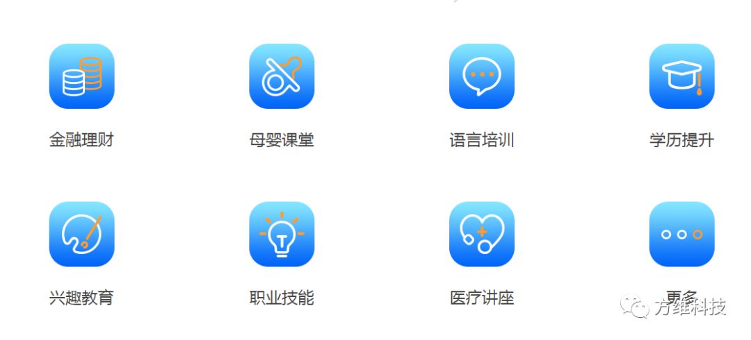 方維教育O2O系統(tǒng)支持市面上主流的課程形式,如視頻、音頻、圖文、直播、問答等等,能夠滿足各場景下的不同需求。