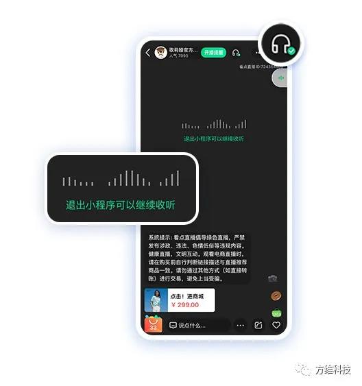粉絲臨時退出直播間,可開啟后臺收聽功能,實現(xiàn)邊聽邊買的優(yōu)質(zhì)購物體驗。