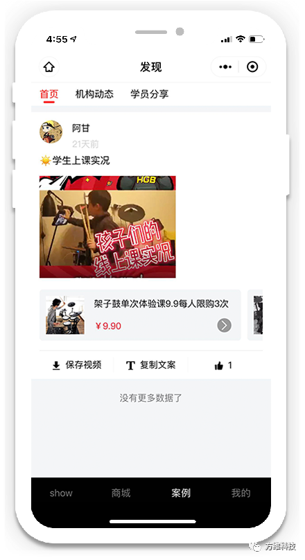 機(jī)構(gòu)動(dòng)態(tài)/教學(xué)成果展示區(qū),打造自有品牌形象,類朋友圈社交互動(dòng)提高轉(zhuǎn)化,促進(jìn)二次交易轉(zhuǎn)化。