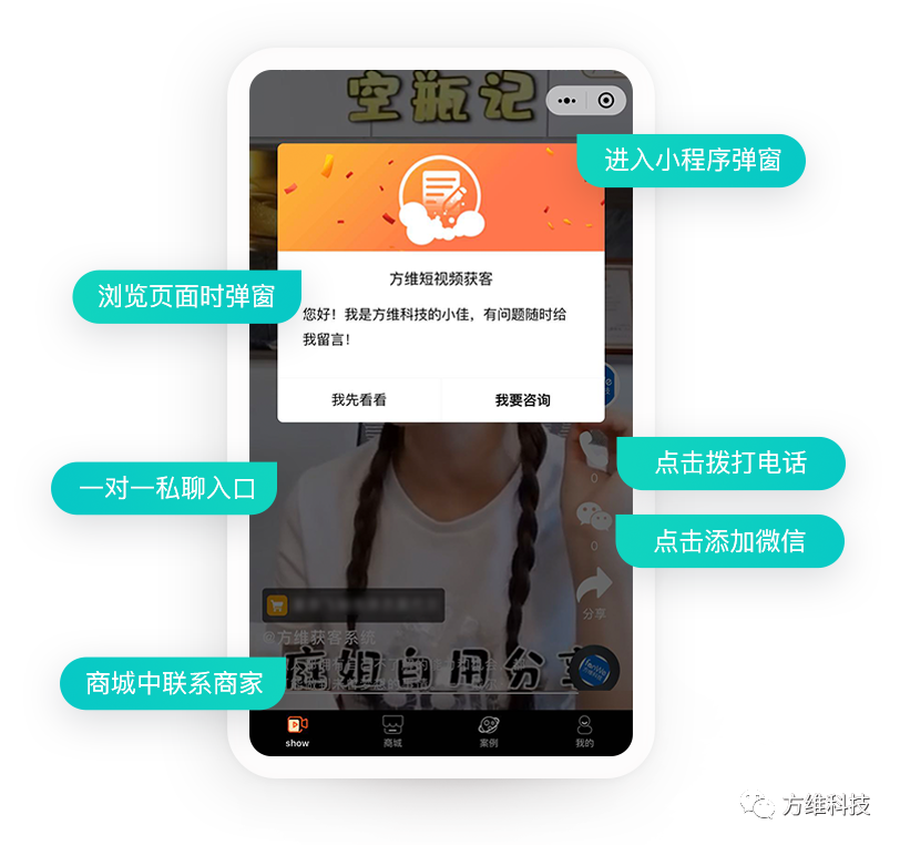 方維旗下觸客短視頻獲客云平臺(tái),結(jié)合短視頻多重優(yōu)勢(shì),并通過SCRM收集用戶數(shù)據(jù),抓取客資,無縫對(duì)接小程序商城,讓成交轉(zhuǎn)化更高效。