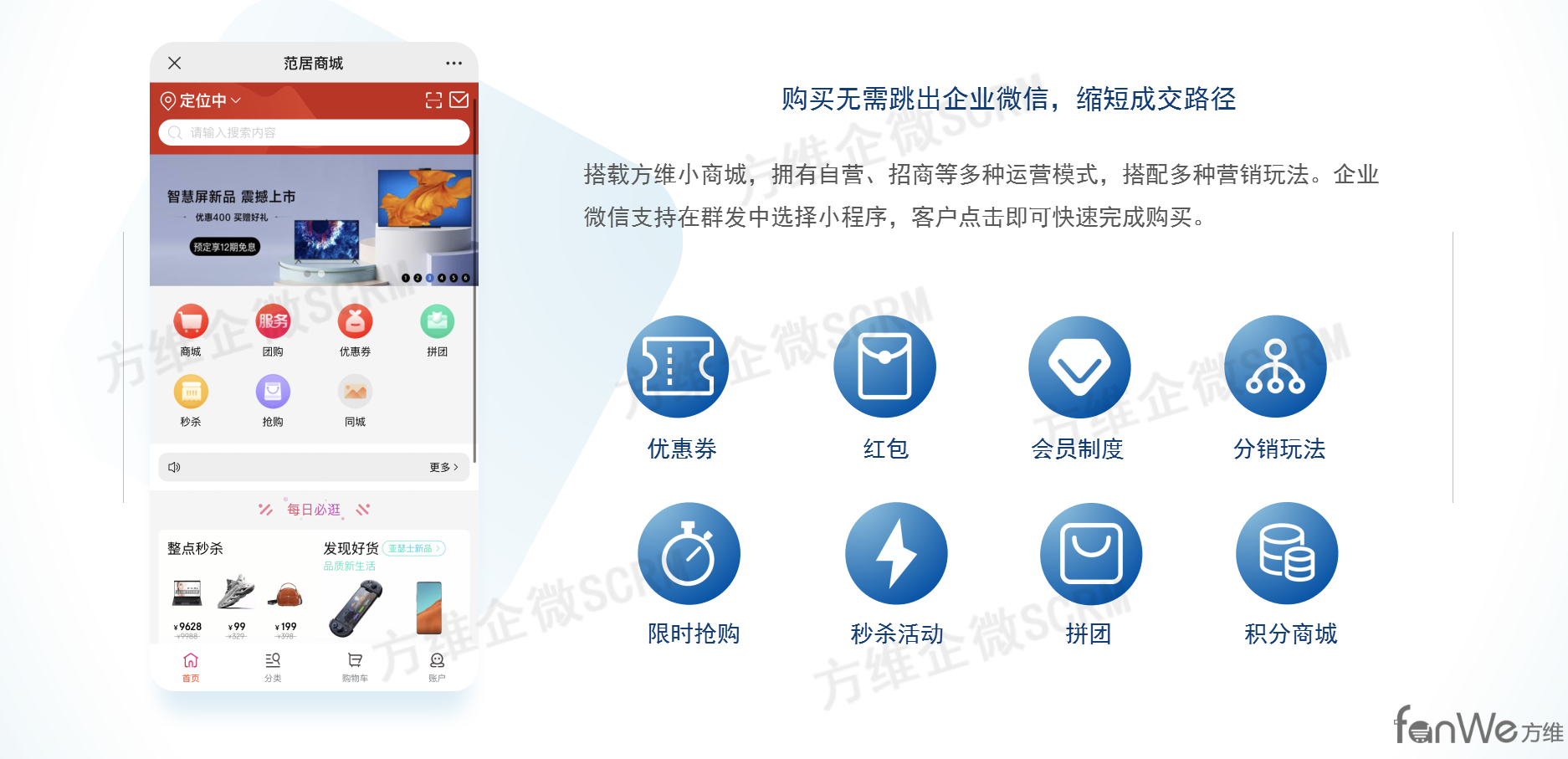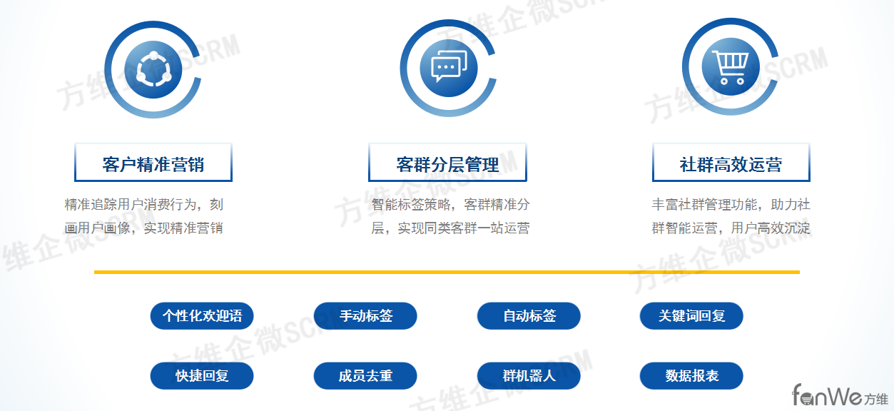 方維企微SCRM,提供企業(yè)微信私域流量營銷解決方案,幫助商戶快速搭建起屬于自己的私域流量池及營銷場景,實(shí)現(xiàn)企業(yè)私域增長。