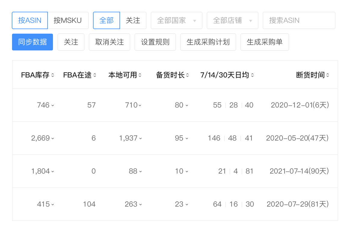 補貨建議模塊根據(jù)賣家供應鏈各個不同參數(shù)和銷售情況,計算出更合理的庫存量