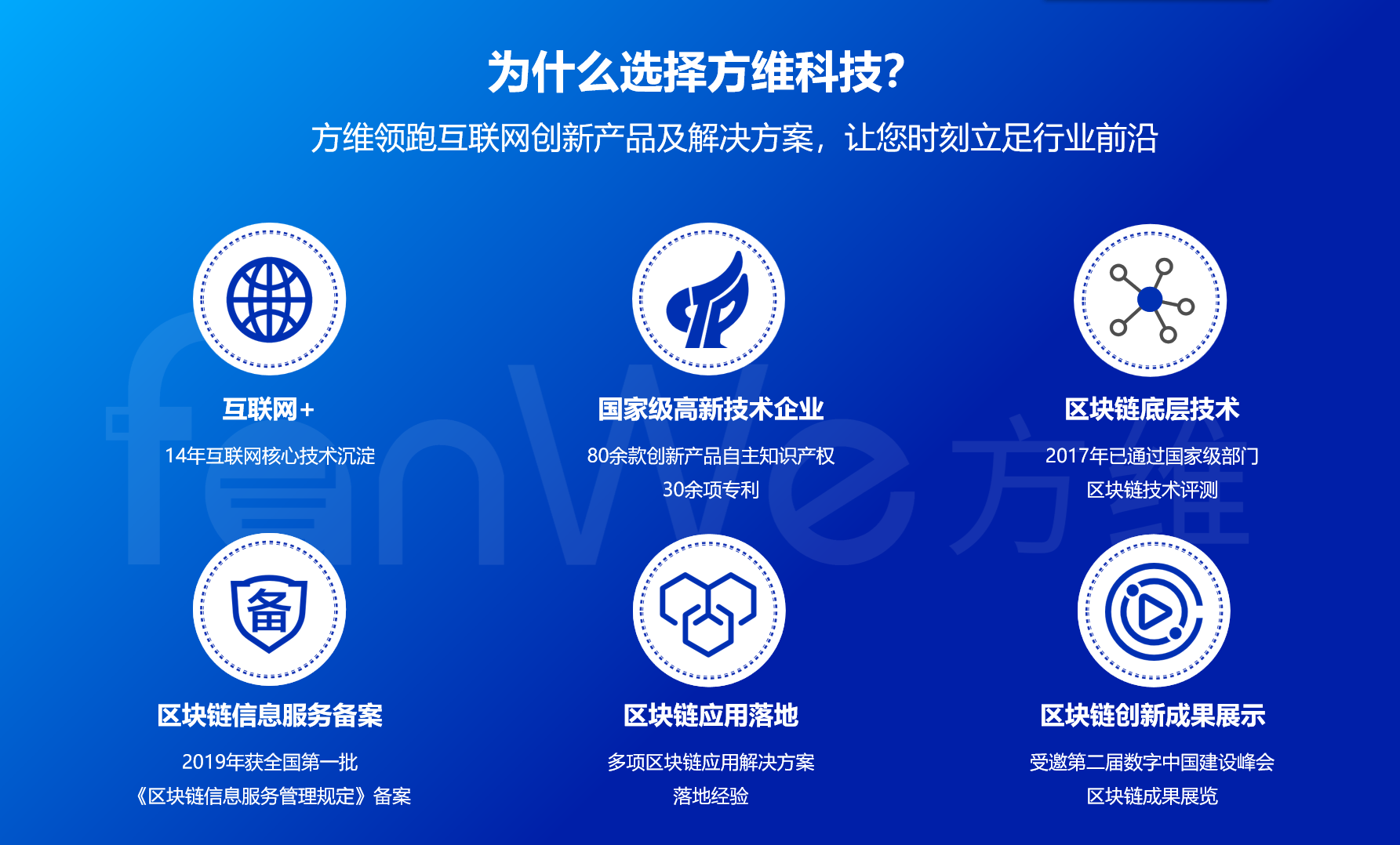 方維通過對接華為、百度、騰訊等多家聯(lián)盟鏈,可提供穩(wěn)定,高效、合規(guī)、專業(yè)的技術支撐。同時在資質方面為企業(yè)提供保障,為企業(yè)提供全套合規(guī)資質申請的協(xié)助與支持。