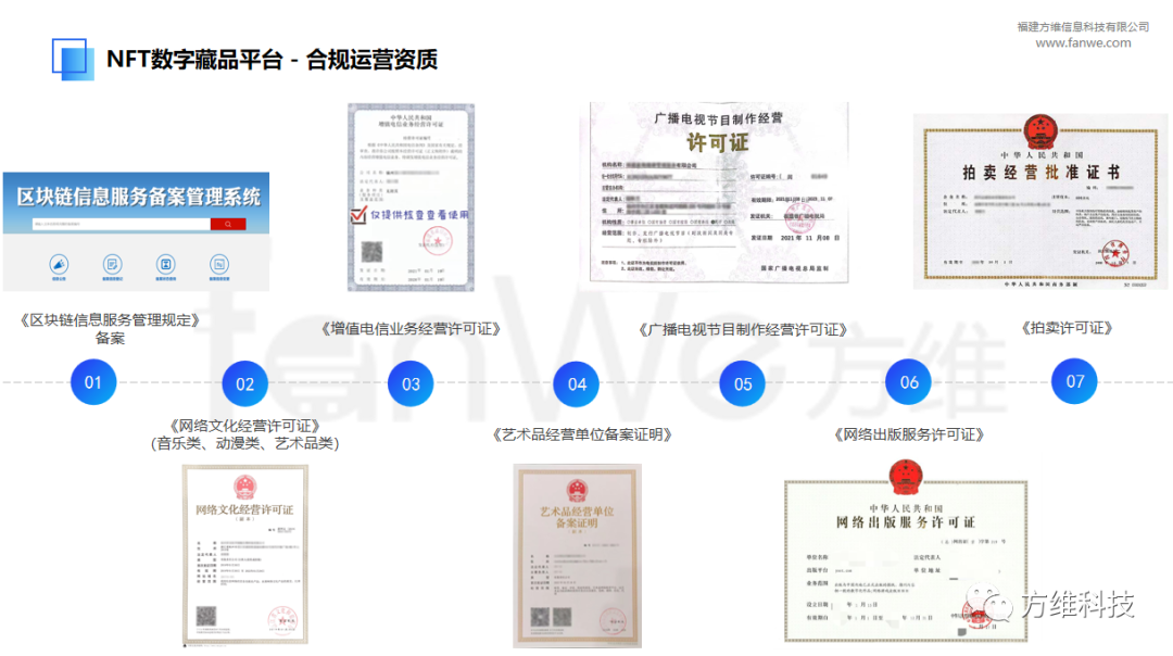 方維基于區(qū)塊鏈技術,提供安全、合規(guī)安全的數(shù)字藏品解決方案,通過對接多家華為、百度、騰訊等區(qū)塊鏈,滿足企業(yè)和機構的上鏈需求,有效提升系統(tǒng)穩(wěn)定性和安全性,保障了數(shù)據(jù)安全。同時,保證合規(guī)運營資質,為您提供穩(wěn)定,高效、合規(guī)、專業(yè)的技術支撐。