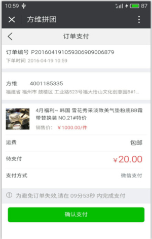 3、用戶支付金額后即可開團成功,進入邀請好友參團或參加其它拼團活動