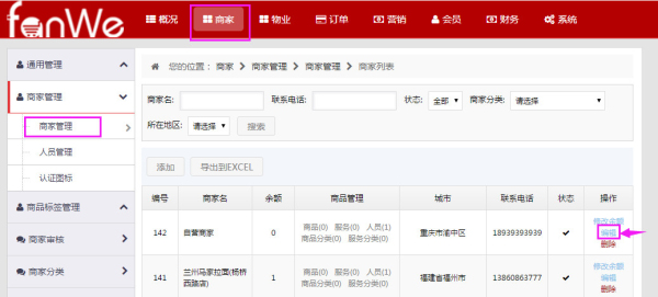 如上圖所示,進入平臺總后臺依次點擊“商家-商家管理-選擇商家-編輯-勾選認證圖標”即可。