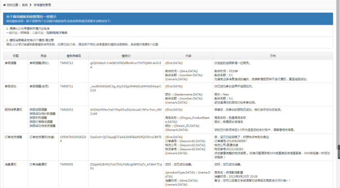 在此頁(yè)面展示各微信消息模板的具體模板信息