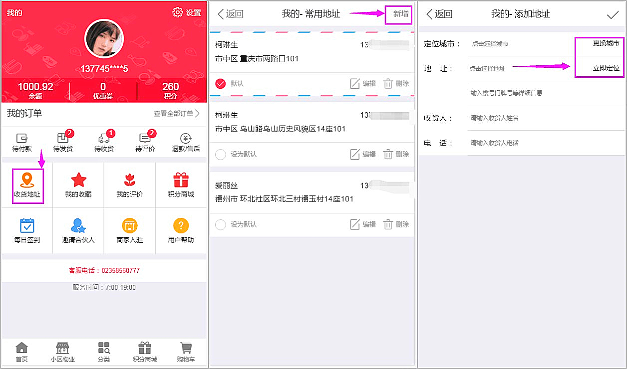 新增功能:用戶端-新增快捷收貨地址