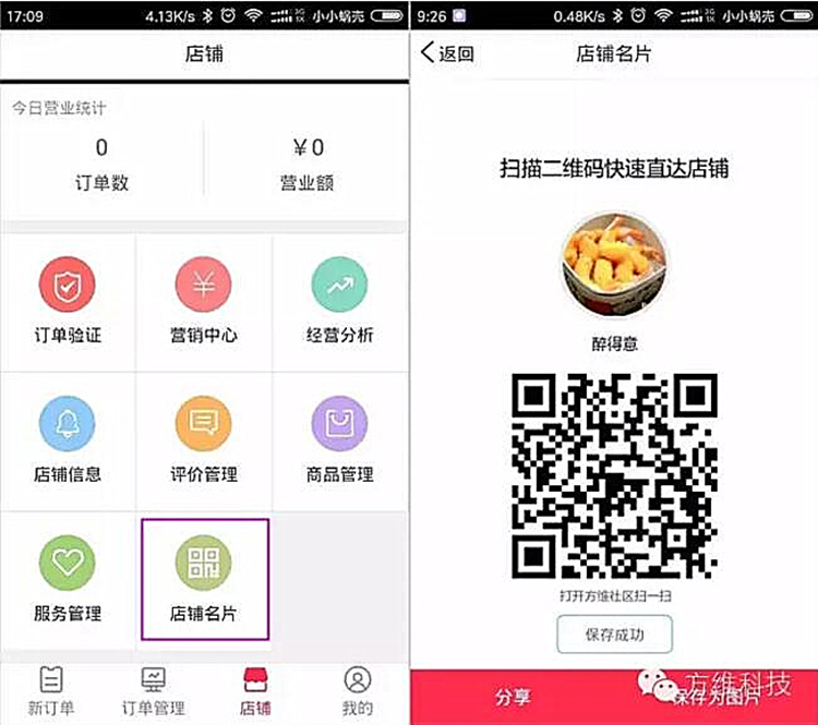 以前沒有用過此功能?沒關(guān)系~方維君早已聽到大家的心聲,現(xiàn)在就來給大家重點(diǎn)介紹方維社區(qū)O2O新增的一項(xiàng)功能——店鋪二維碼名片收藏與保存。有了這個(gè)功能,商城的用戶就能直達(dá)店鋪啦,還可以快速進(jìn)行分享哦~下面就讓方維君帶大家實(shí)際操作一下~