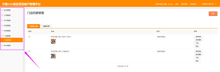 方維城市O2O代理商管理中心集驗證管理、訂單管理、點評管理、項目管理、財務(wù)管理、門店管理、賬戶管理于一體,每個模塊下拉都能顯出二級分類,代理商在此即可對所有信息進(jìn)行編輯,還能查看目前所有的數(shù)據(jù),資金流水一手掌控。