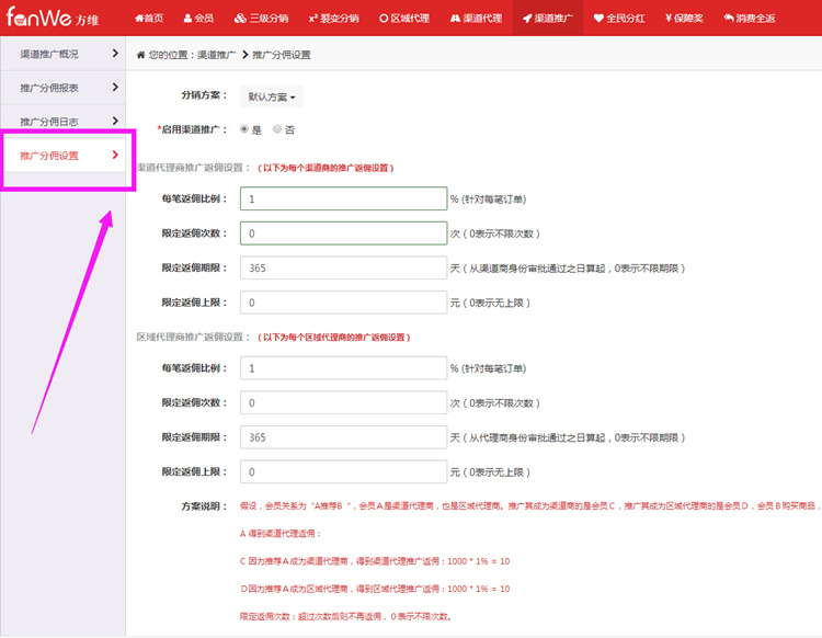 商家按照上述步驟,進(jìn)入方維人人電商系統(tǒng)商家端后臺啟用渠道推廣,再根據(jù)平臺自身情況對渠道推廣員返傭及渠道推廣其他信息進(jìn)行自定義編輯,最后點擊提交即可。