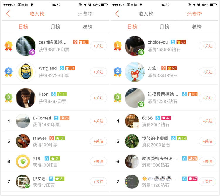 功能亮點(diǎn): 收入排行榜and消費(fèi)排行榜