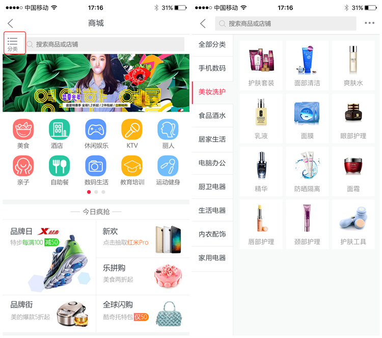 用戶操作步驟:用戶登錄方維城市O2O系統(tǒng) →首頁(yè) → 點(diǎn)擊分類(lèi) → 體驗(yàn)最新最全的產(chǎn)品分類(lèi) → 享受一場(chǎng)完美的線上購(gòu)物體驗(yàn)