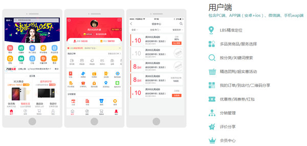 方維同城O2O模式面向于互聯(lián)網(wǎng)公司、大型零售商超、百貨公司、物流配送公司、自品牌等群體,同時(shí)全方位覆蓋商城團(tuán)購、餐飲美食、同城配送、電影娛樂等多種業(yè)務(wù)范圍,幫助客戶分城市地區(qū)快速打造多元化的生活服務(wù)平臺(tái),做你自己的美團(tuán)!