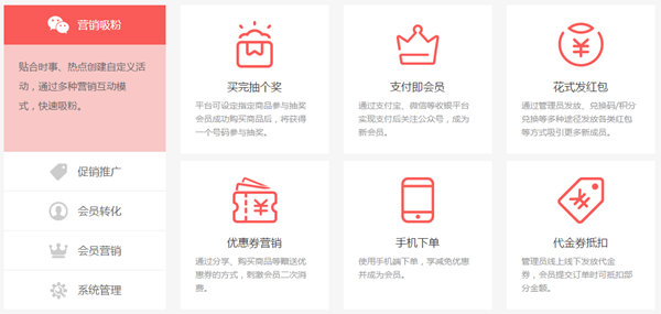豐富的營銷功能助您打造超粘性、高活躍的O2O粉絲社群