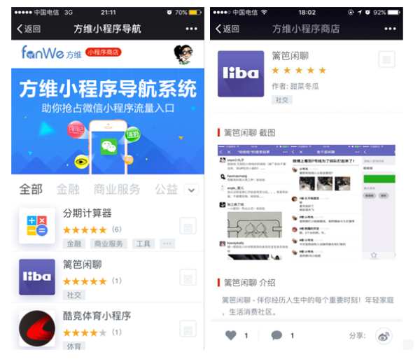 對(duì)用戶來說,不用線下掃碼、不用等著別人推薦、不用自己精確搜索,只要進(jìn)小程序應(yīng)用商店的統(tǒng)一入口,各種分類應(yīng)有盡有。免去各種繁雜,想用的小程序隨你挑!