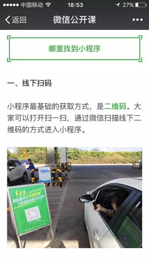 無論是微信官方還是張小龍,線下掃碼的場(chǎng)景永遠(yuǎn)被他們最先提及,而且現(xiàn)在小程序的傳播必須用攝像頭掃描二維碼,這就說明了,張小龍心中的小程序,是為了鋪設(shè)線下場(chǎng)景,為那些我們使用頻率不高,用完就走的程序設(shè)計(jì)的。