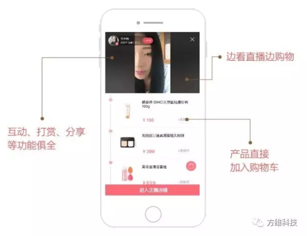 邊看邊買:看直播的同時(shí),能將主播推薦商品一鍵加入購物車并付款,邊看邊買。