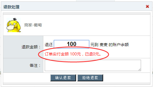 優(yōu)化過后,管理員在系統(tǒng)后臺處理訂單退款時,方維城市O2O系統(tǒng)就會自動彈出退款提示,幫助管理員準(zhǔn)確了解退款情況,以便及時進(jìn)行退款處理,整個流程快速便捷,不僅可以讓平臺方可以更好的管理退款情況,方便平臺運營,還能讓入駐在平臺的商家盡快地完成與消費者之間的退款流程,全方位打造客戶滿意度。